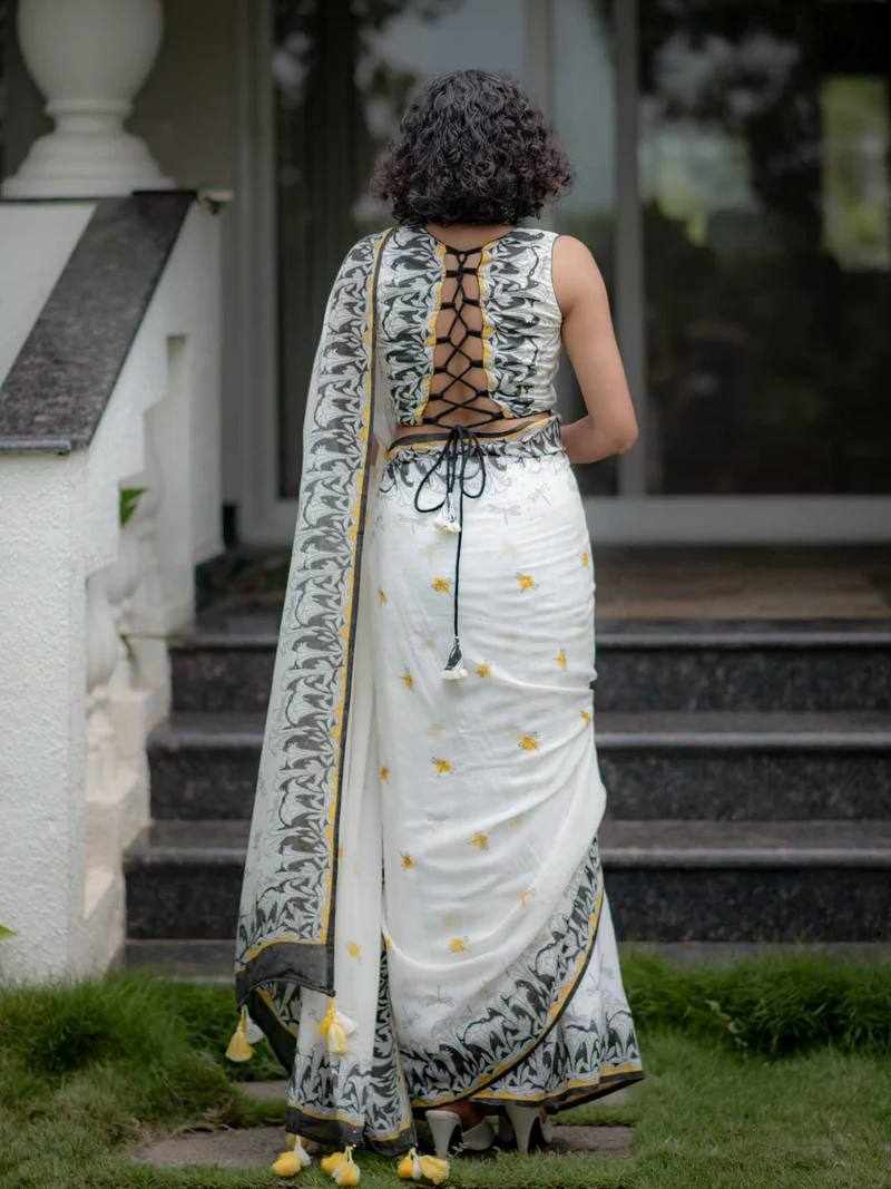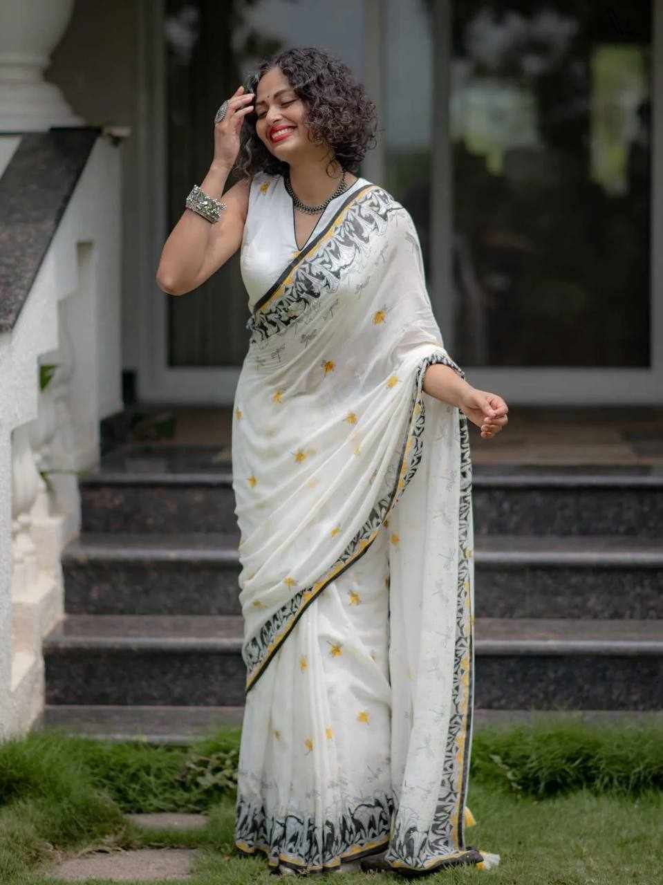 | Name : | KP-W 350 New Party Wear White Colour Saree |