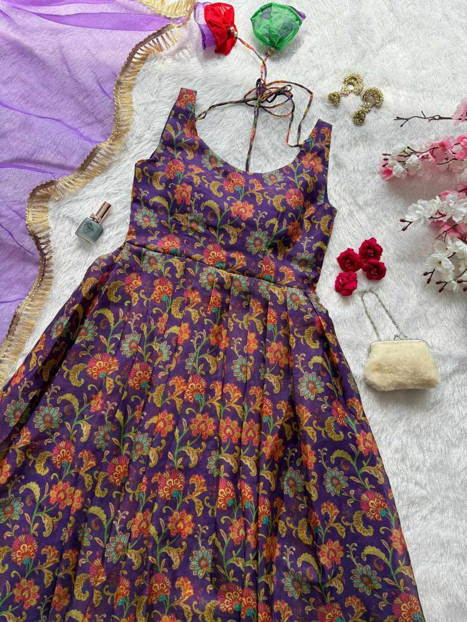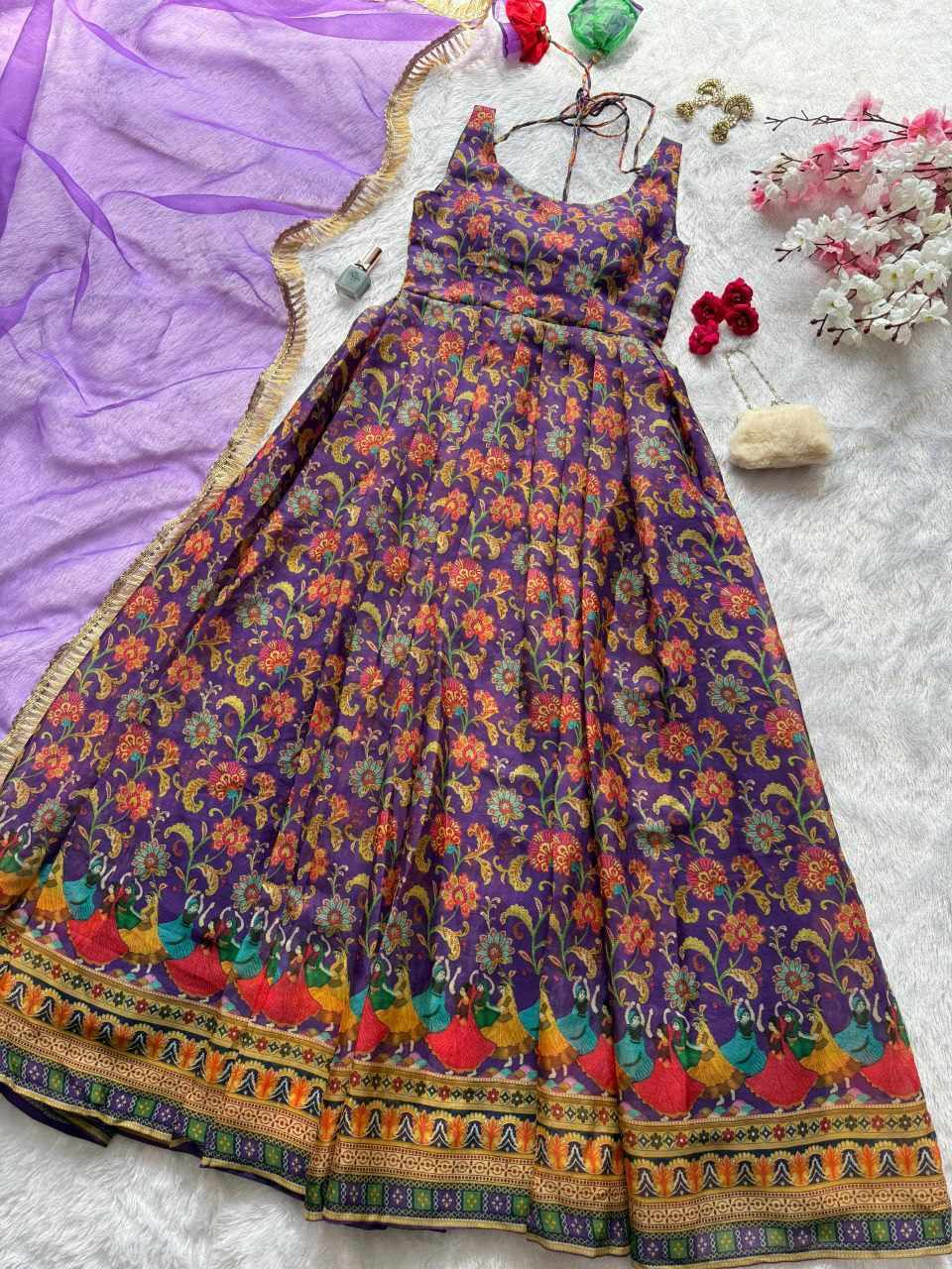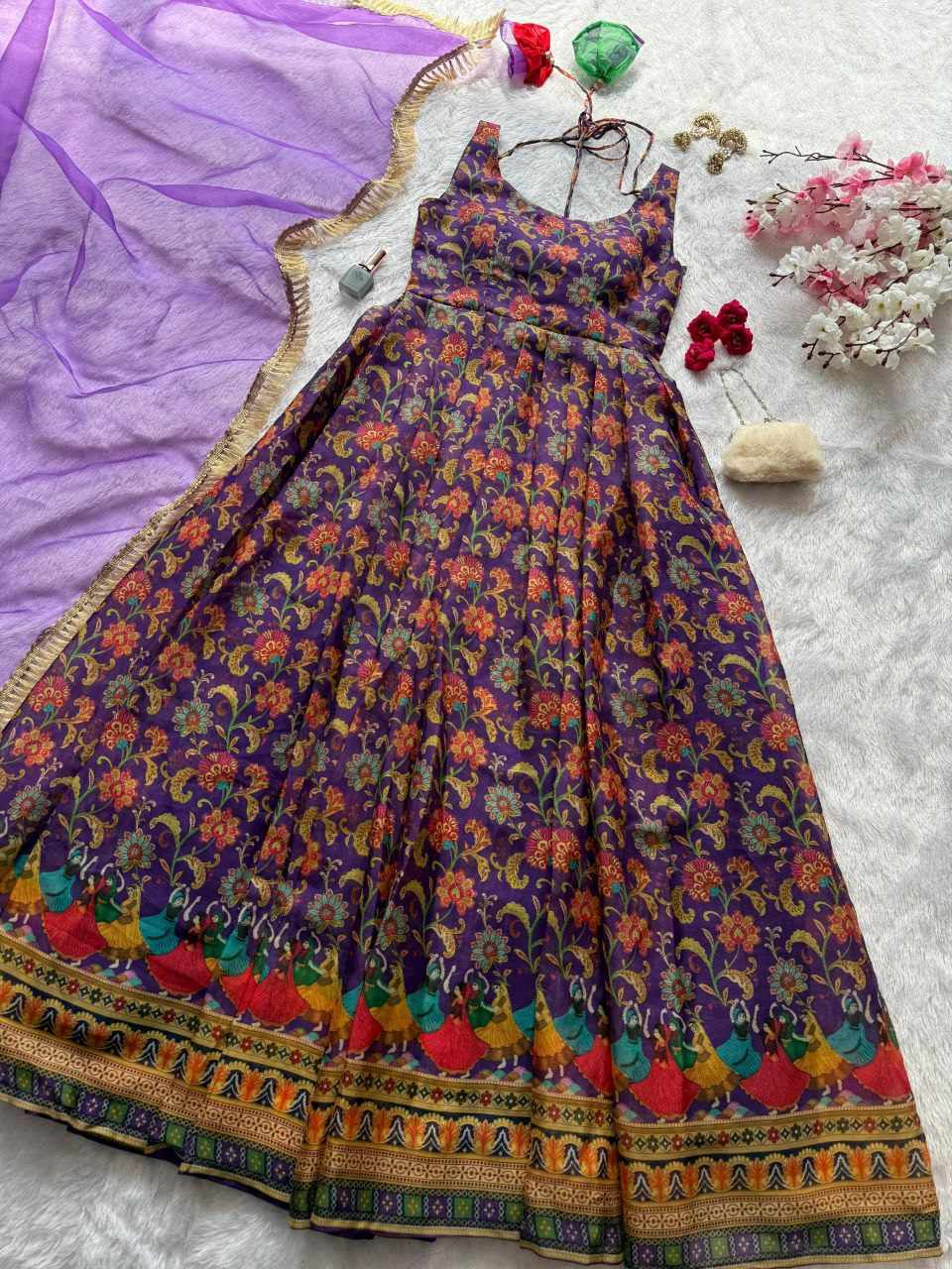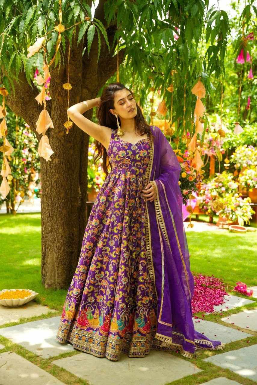 Anarkali Gown – Digital printed Jimmy Organza silk suit with a huge, flowy flair for an elegant look